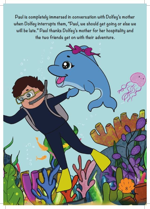 After saving Miss Spinner, Paul became a hero of the marine folks and a dear friend of Miss Dolfey. To extend their gratitude, Miss Dolfey has invited Paul to the ocean so that she can show him around her vibrant home. Snorkel up, buddies, it’s time to dive with Miss Dolfey!